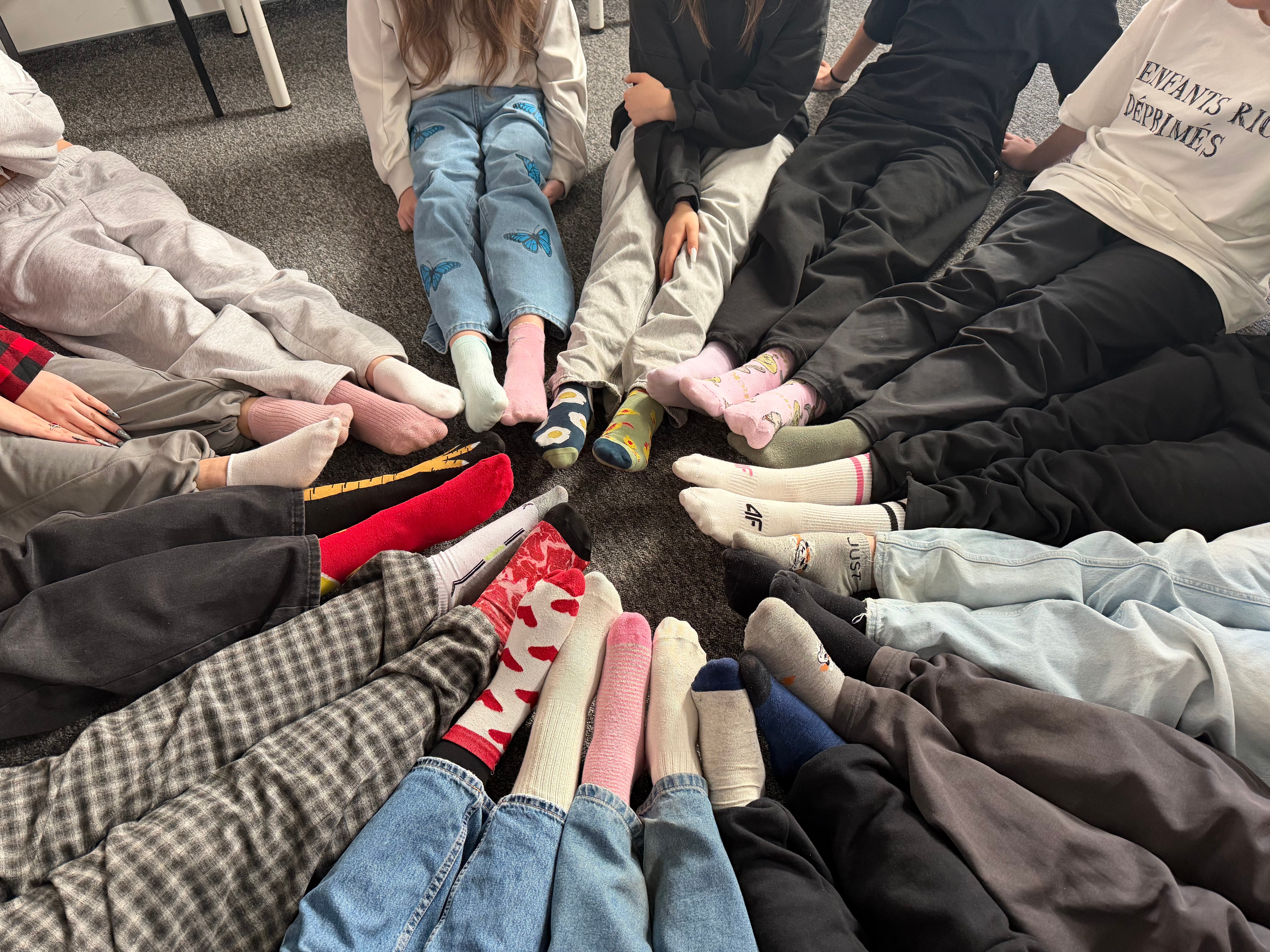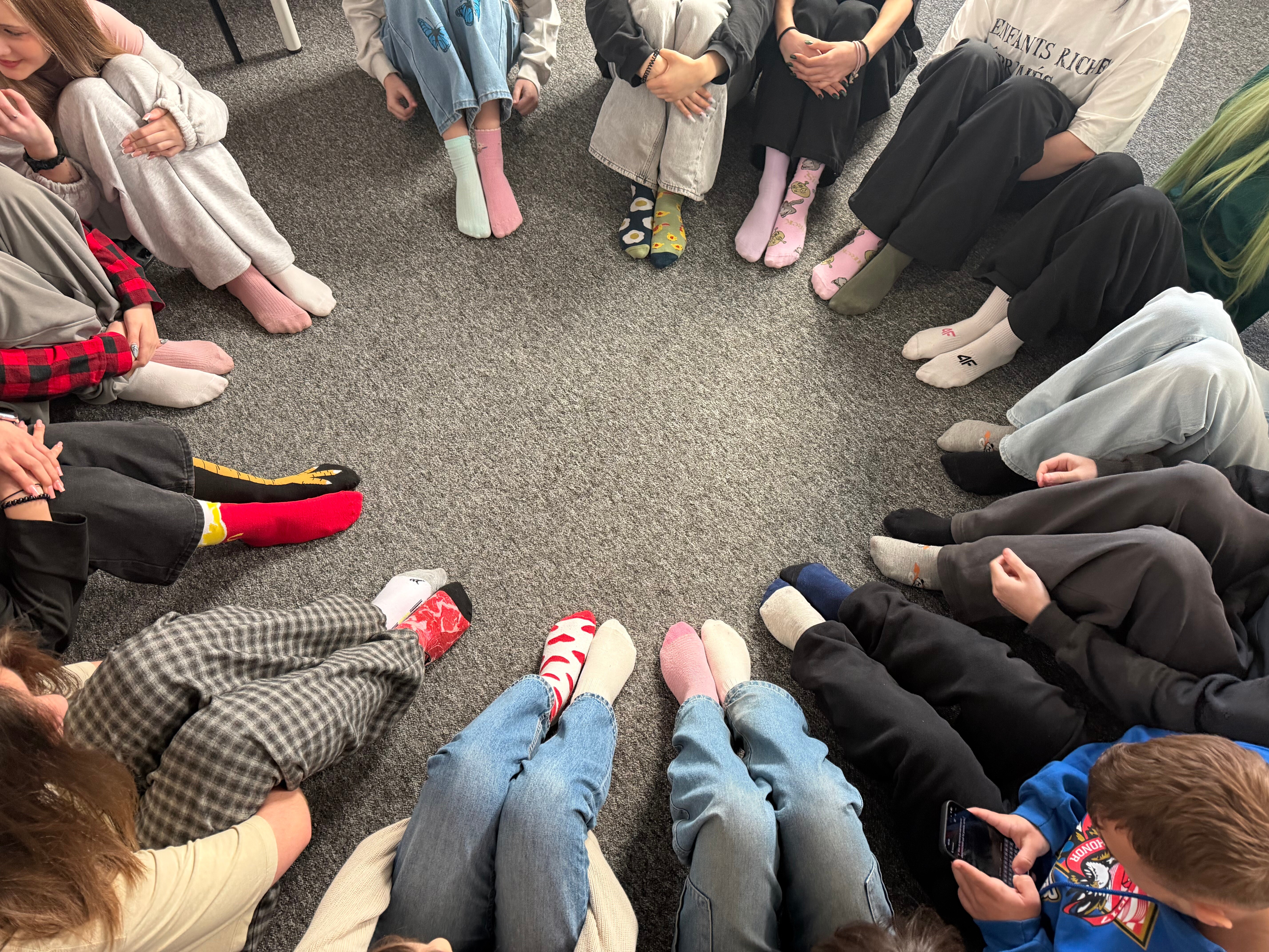 Uczniowie naszej szkoły udowodnili, że akceptacja i empatia są dla nich naturalne. Jak widać na załączonym zdjęciu, krąg kolorowych skarpetek stał się wizualnym manifestem naszego wsparcia.