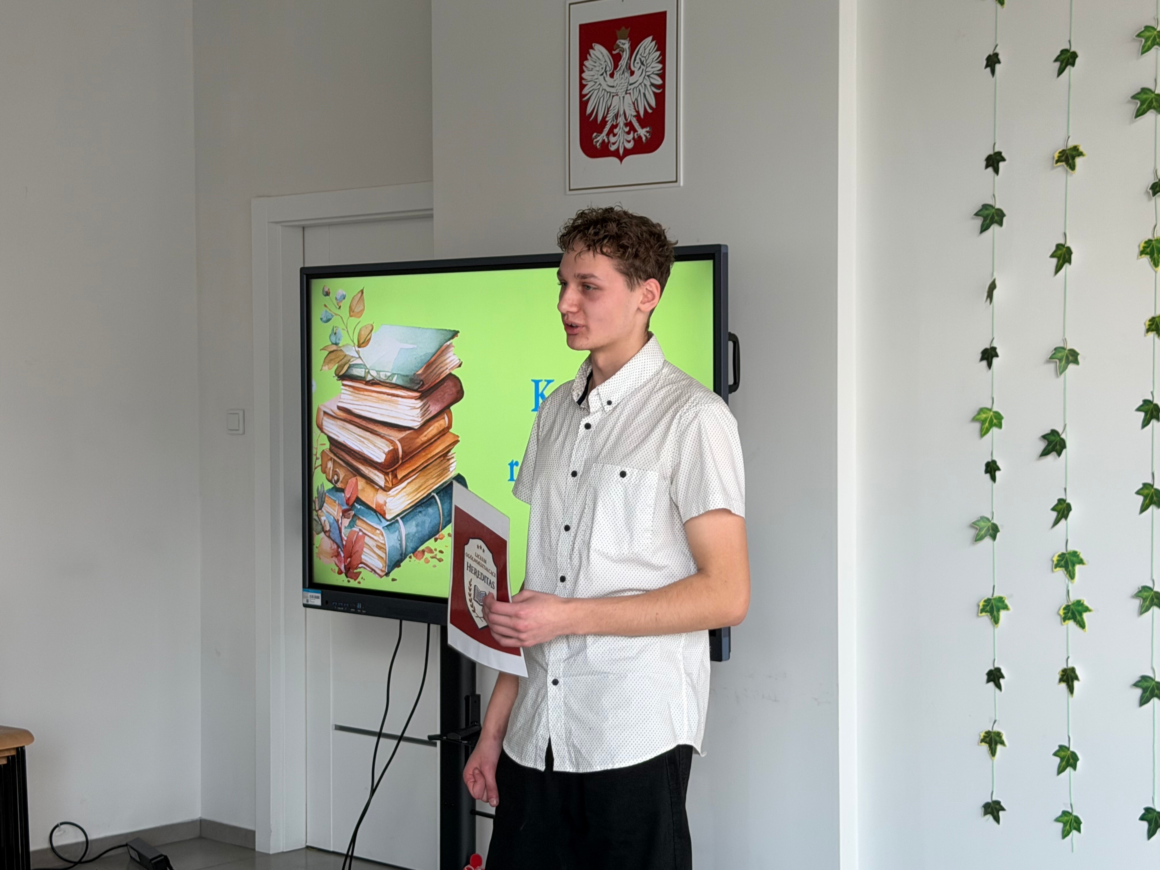 Szczególnym i niezwykle odważnym momentem całego wydarzenia był występ jednego z uczniów, który zdecydował się wyjść poza ramy ustalonego repertuaru i zaprezentował przed publicznością oraz jury własny, autorski wiersz, udowadniając tym samym, że w Liceum Hereditas drzemie ogromny potencjał twórczy i literacki.