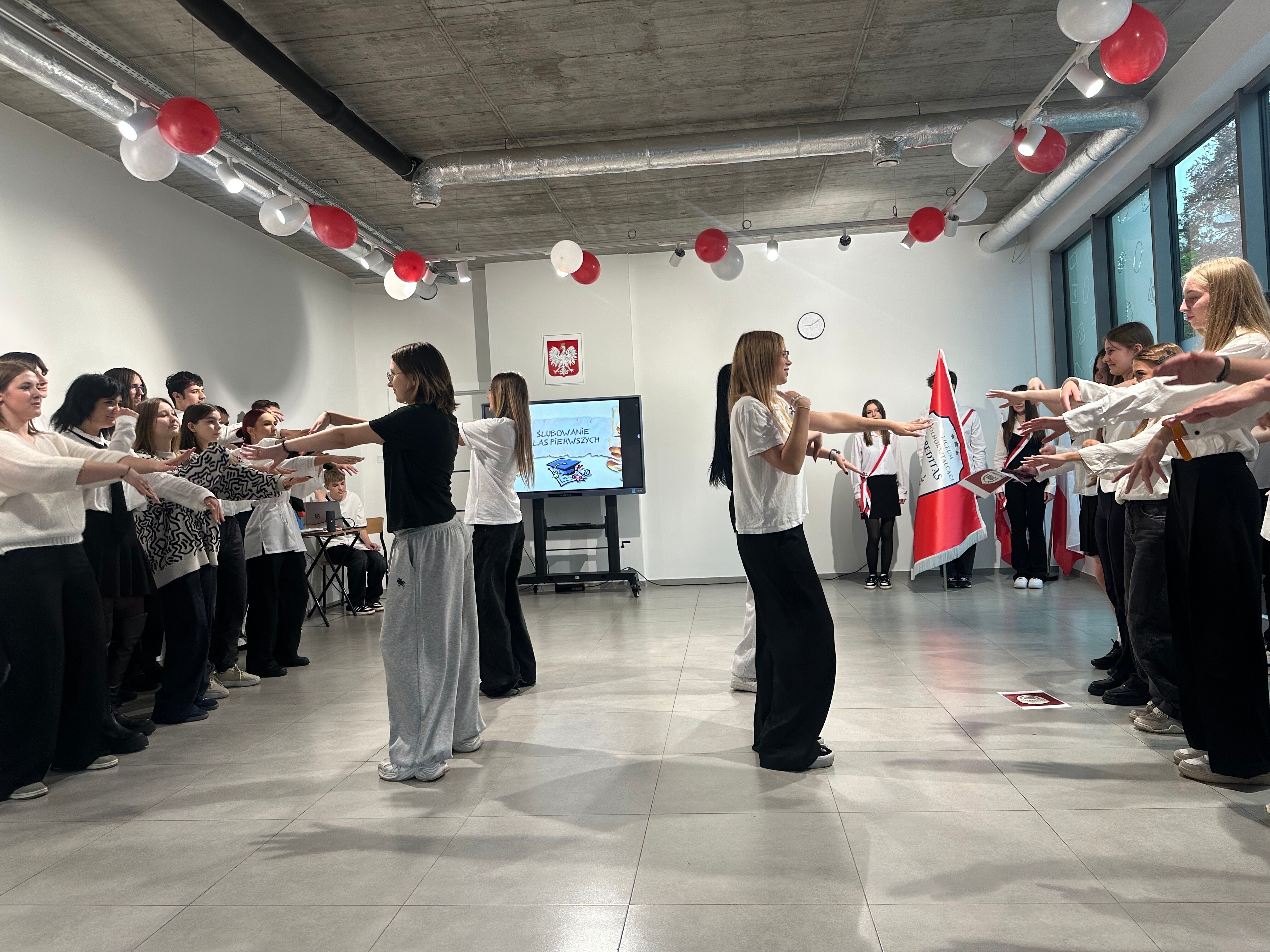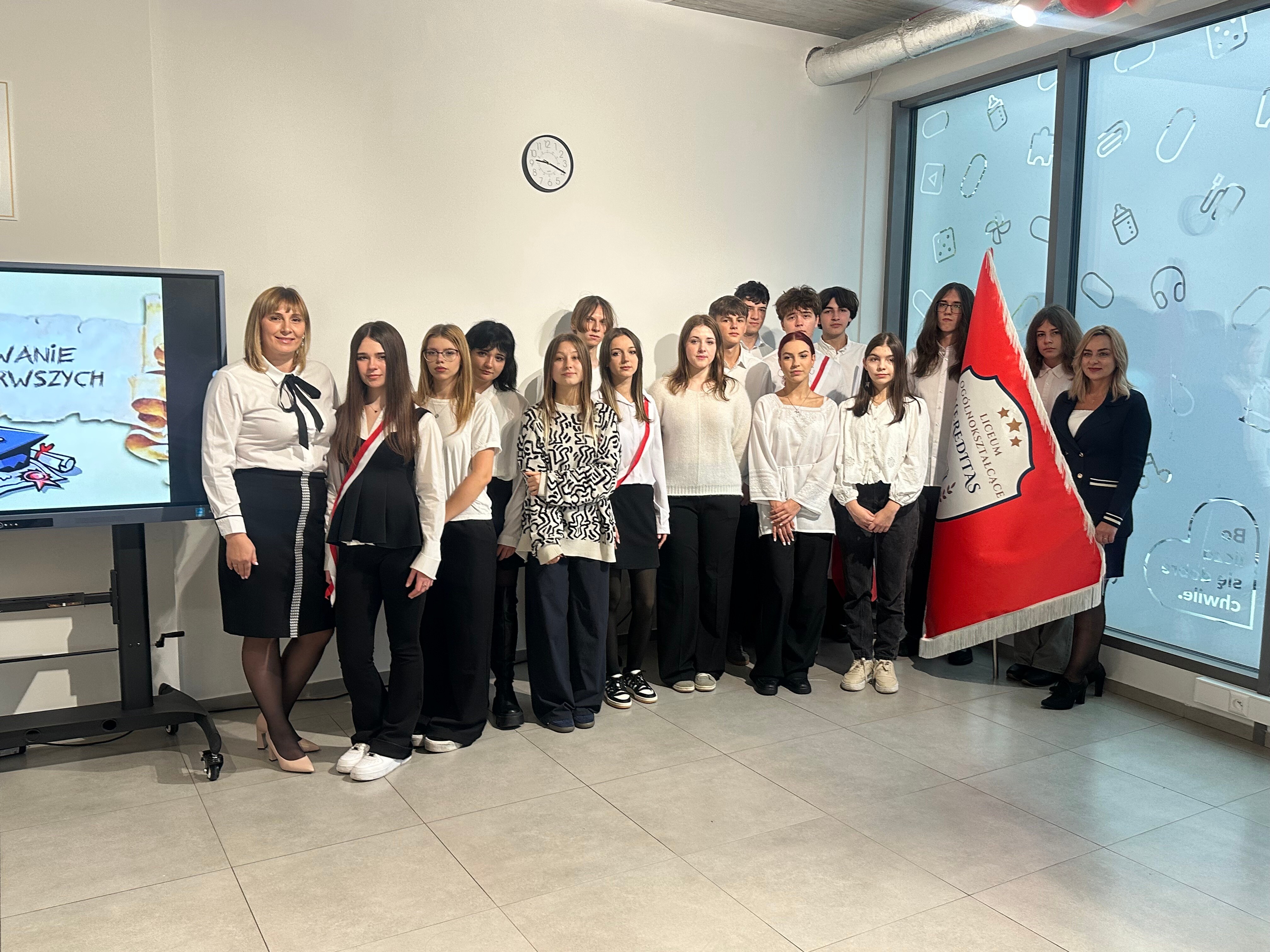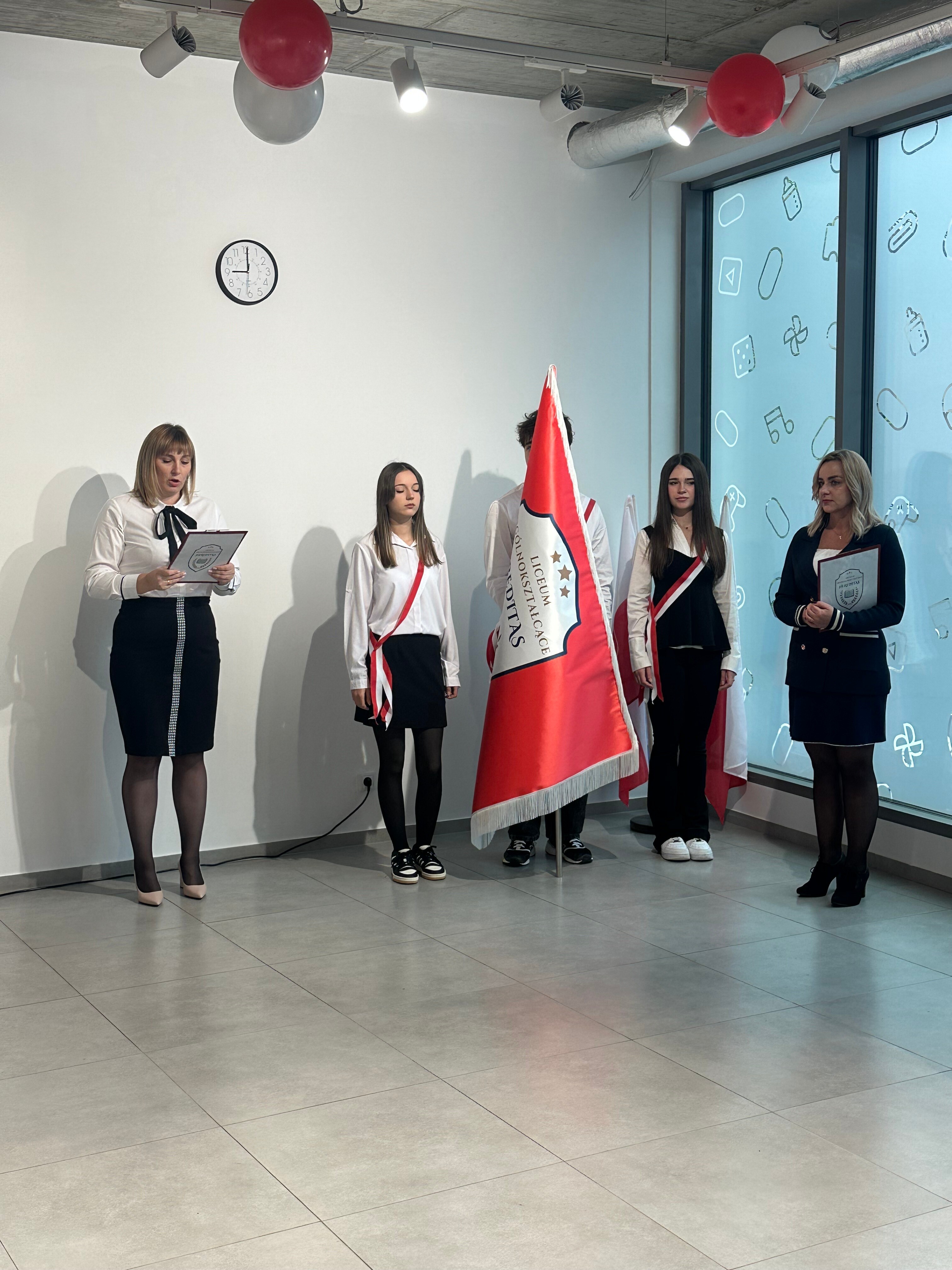 Tradycyjnie, w trakcie ceremonii nie mogło zabraknąć odśpiewania hymnu narodowego. Wszyscy zebrani stanęli, a w sali rozbrzmiały dźwięki „Mazurka Dąbrowskiego”. Ten moment był wyjątkowy, ponieważ symbolizował nie tylko wejście w szeregi społeczności Liceum Hereditas, ale także przypomnienie o wartościach patriotycznych, które w szkole są pielęgnowane. Uczniowie, ich rodziny oraz nauczyciele wspólnie zaśpiewali hymn z pełnym szacunkiem i dumą, co wprowadziło do uroczystości atmosferę powagi i refleksji.